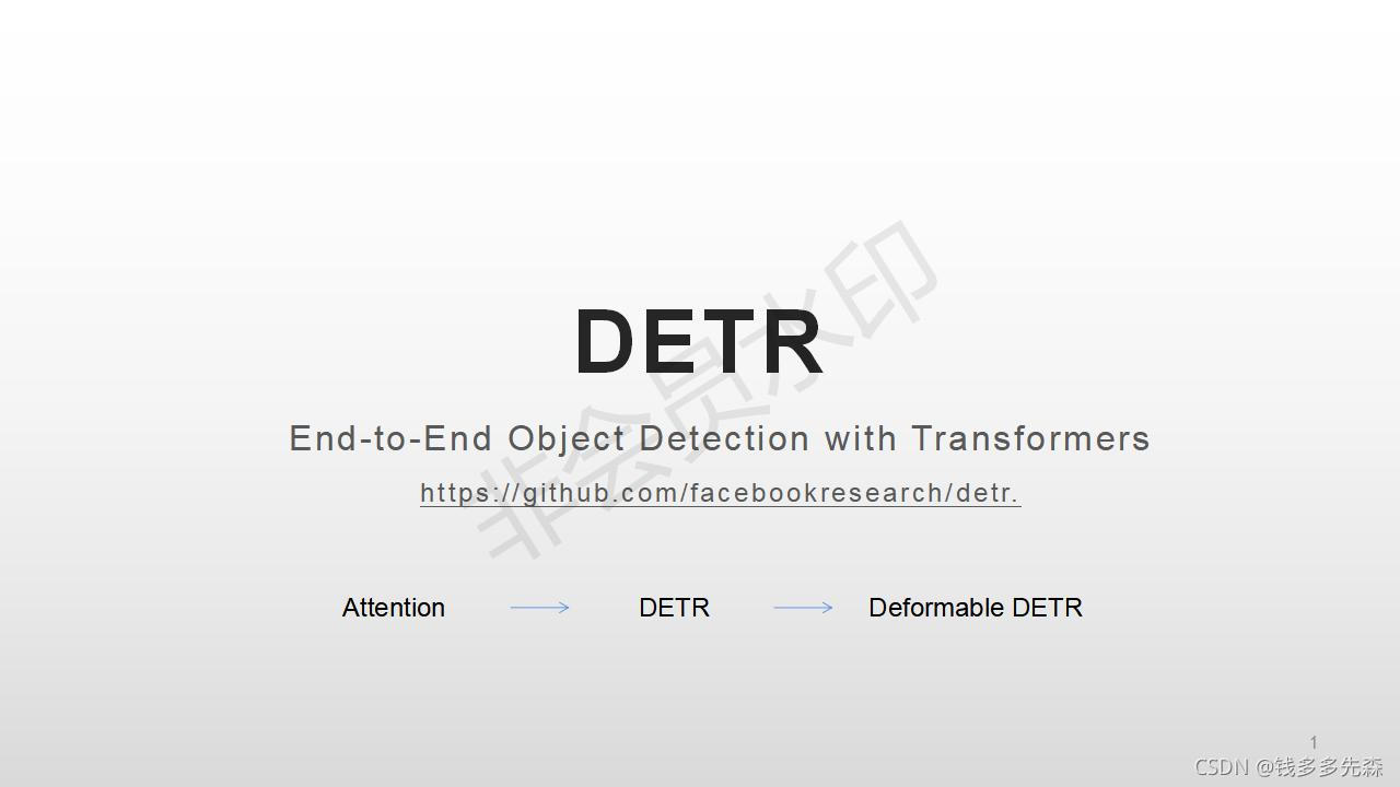 DETR全程是End-to-End Object Detection with Transformers,他是基于attention注意力机制发展出来的一种网络结构算法。