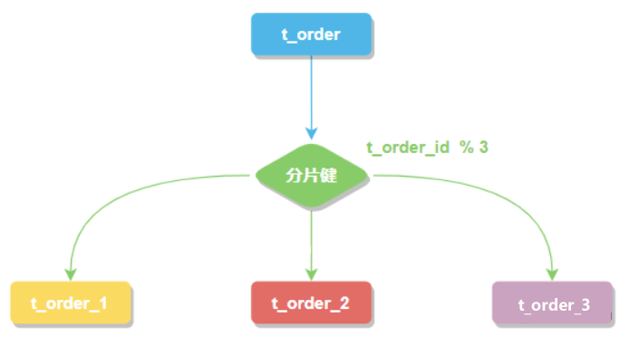 t_order_$->{t_order_id % 4} 代表 t_order 对其字段 t_order_id取模,拆分成4张表,而表名分别是t_order_0 到 t_order_3。