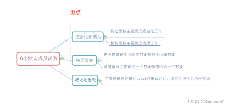 在最后总结一下:对于构造函数和析构函数,我们可以近似理解为初始化,以及销毁,但是它的功能有没有那么强大,所以,在自己要使用 资源的时候,必须自己初始化,以及销毁。因为编译器不可能知道你想干什么。对于拷贝构造来说,它的职责就是给同类对象进行拷贝,但是编译器做到的只是简单的字节拷贝,就是浅拷贝,要资源使用的时候就要进行深拷贝。可以理解为:需要调用析构函数的都要深拷贝,不需要调用析构函数的,就可以不写,使用编译器默认的拷贝构造函数。对于赋值运算符,我们要知道.* :: sizeof ?: . 注意以上5个运算符不能重载。其他的赋值运算符我们可以自己理解并实现即可。