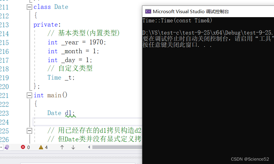 结果很显然,编译器会自动生成一个默认的拷贝构造。