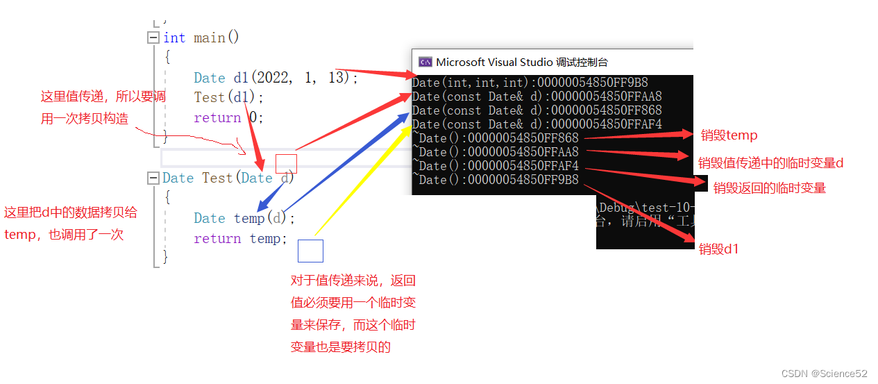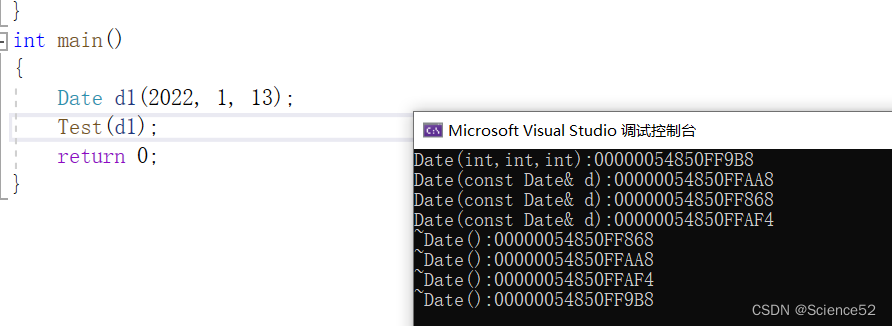 // 用已经存在的d1拷贝构造d2,此处会调用Date类的拷贝构造函数