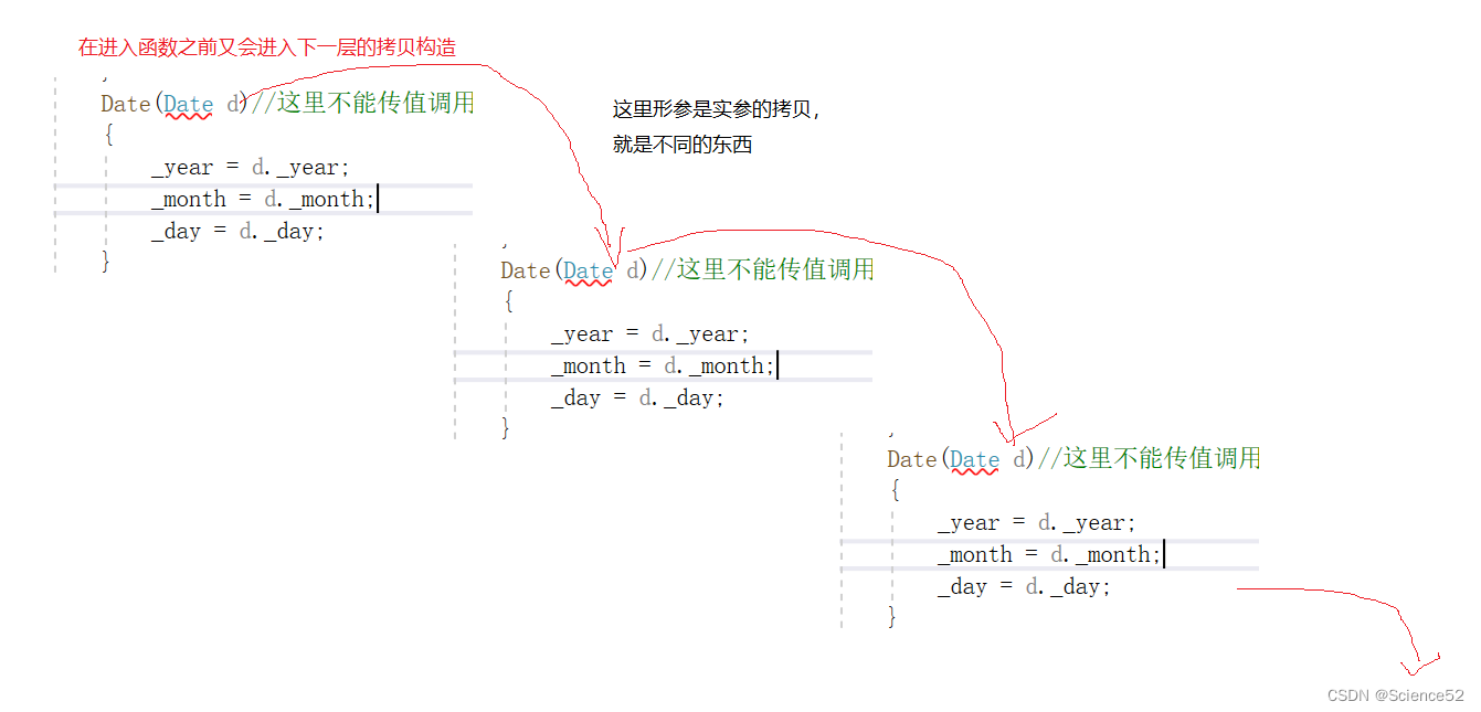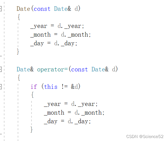 // 但Date类并没有显式定义拷贝构造函数,则编译器会给Date类生成一个默认的拷贝构
