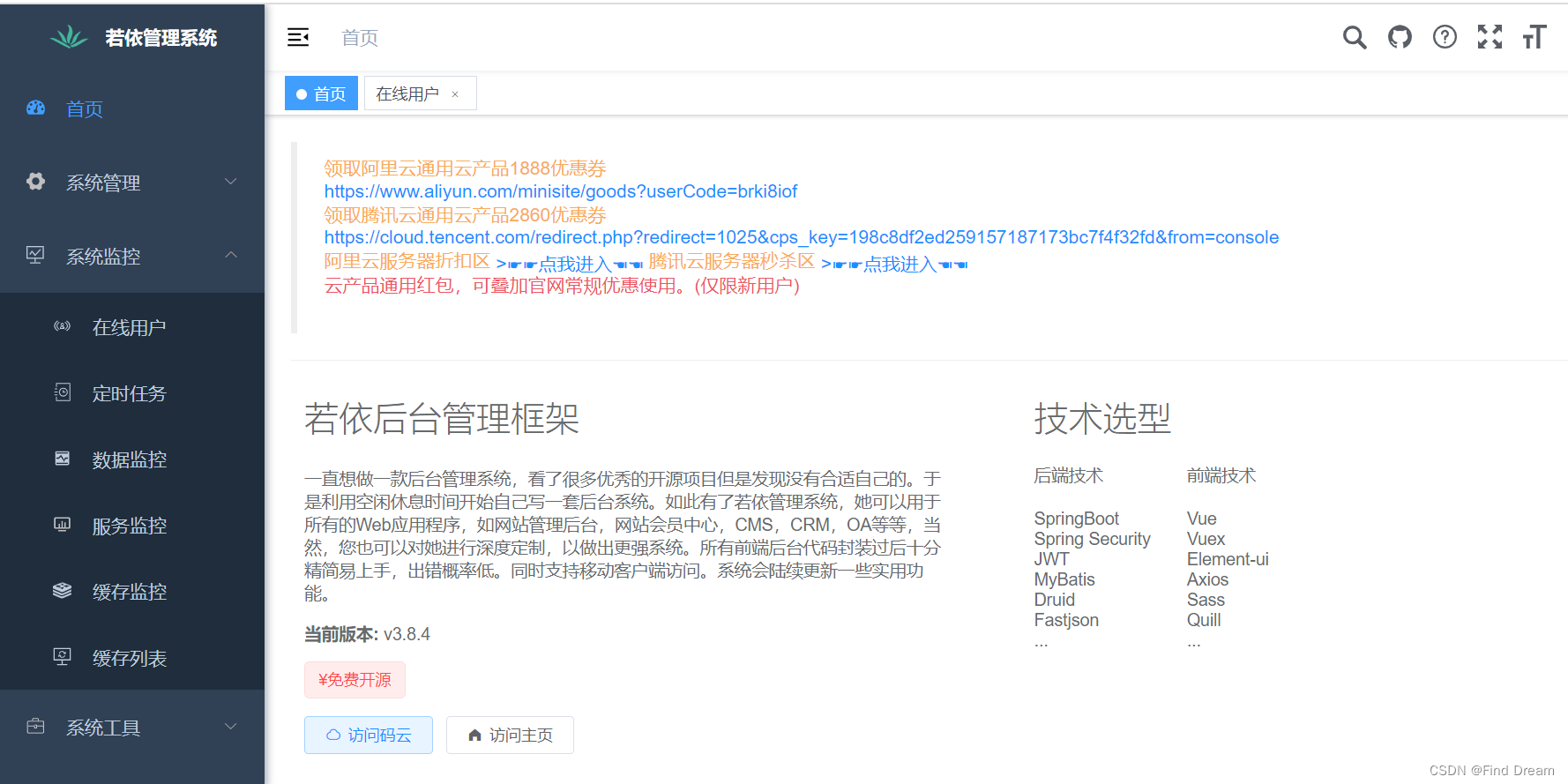 查了网上有用IDEA不多,而且不够细,如此便有了若依管理系统的IDEA搭法,中间我遇到的一些坑,我把我的搭法分享给大家,希望B友、C友们能点个赞。
