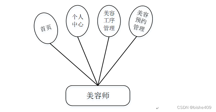 美容师登录后可进行首页、个人中心、美容工序管理、美容预约管理,美容师用例如图3-3所示。