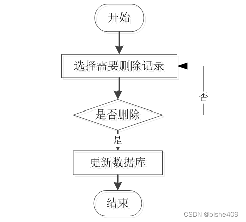用户选择要删除的信息并单击Delete按钮。系统提示是否删除信息。如果用户想要删除信息,系统将删除信息。系统数据库删除信息。删除信息流程图如图3-6所示。