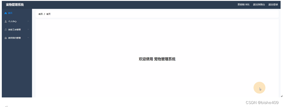 美容师点击后台进入到系统操作界面,可以对首页、个人中心、美容工序管理、美容预约管理等功能进行相应操作,如图5-23所示。
