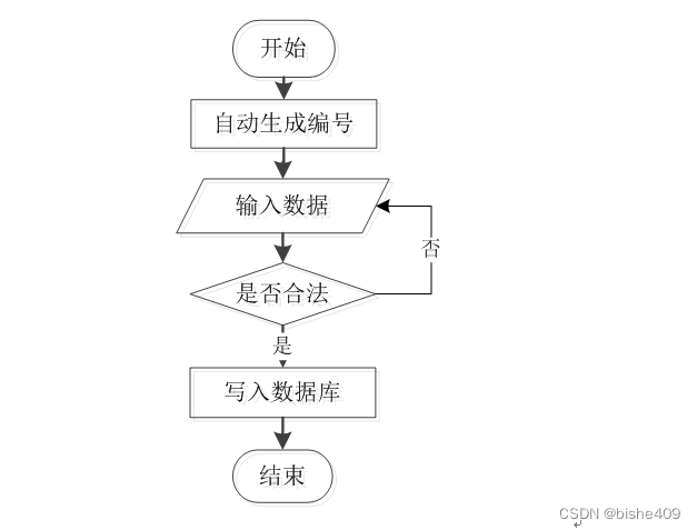 添加信息,编号系统使用自动编号模式,没有用户填写,用户添加信息输入信息,系统将自动确认的信息和数据,验证的成功是有效的信息添加到数据库,信息无效,重新输入信息。添加信息流程如图3-4所示。