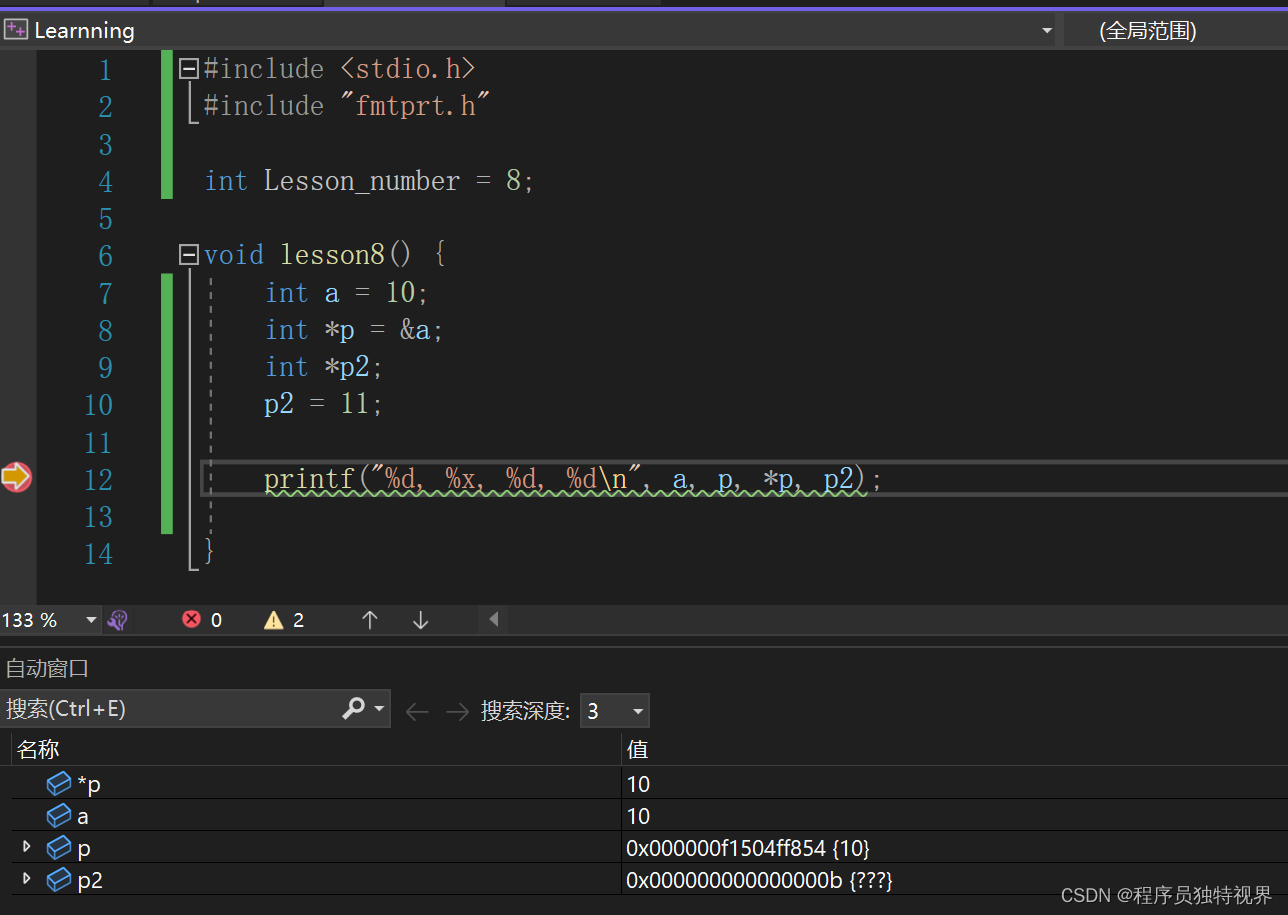 - p2初始化定义没有问题,但是直接把整数11赋给p2是不对的;p2会把11转成16进制0x000000000000000b,然后根据这个地址找存储单元取值,结果自然是找不到的