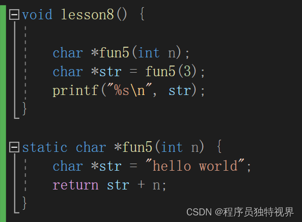在使用的过程中,因为要接收函数的返回值,所以要定义一个同等类型的指针变量来作为函数返回值的赋值对象。下面是一个相当于字符串截取的参考示例,返回一个字符指针: