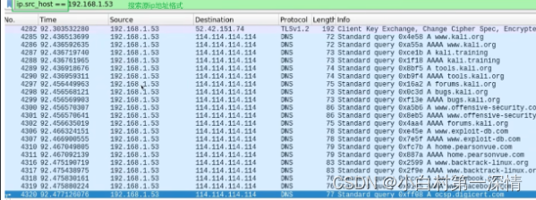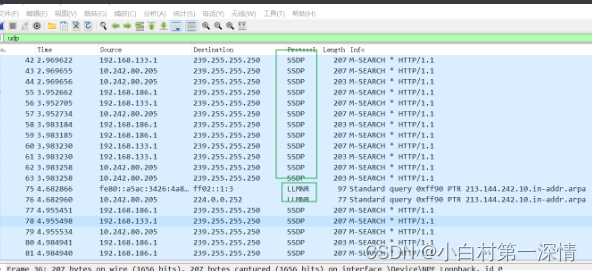 我们使用过滤器输入“udp”以筛选出udp报文。但是为什么输入udp之后出现那么多种协议呢? 原因就是oicq以及dns都是基于udp的传输层之上的协议 扩展:客户端向DNS服务器查询域名,一般返回的内容都不超过512字节,用UDP传输即可。不 用经过三次握手,这样DNS服务器负载更低,响应更快。I理论上说,客户端也可以指定向DNS服务器 查询时用TCP,但事实上,很多DNS服务器进行配置的时候,仅支持UDP查询包。