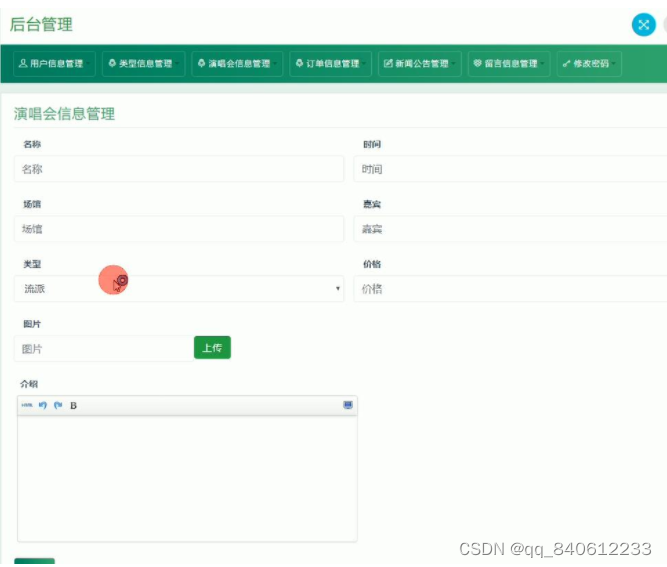 管理员:上架新的商品、下架不需要的演唱会、查询演唱会、修改演唱会信息。