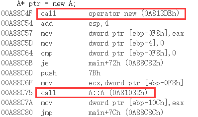 class A { public: A(int a = 123) : _a(a) { cout << "A():" << this << endl; } ~A() { cout << "~A():" << this << endl; } private: int _a; }; int main() { //malloc开辟的空间 A* a1 = (A*)malloc(sizeof(A)); //new开辟的空间 A* a2 = new A; free(a1); //delete销毁空间 delete a2; return 0; }
