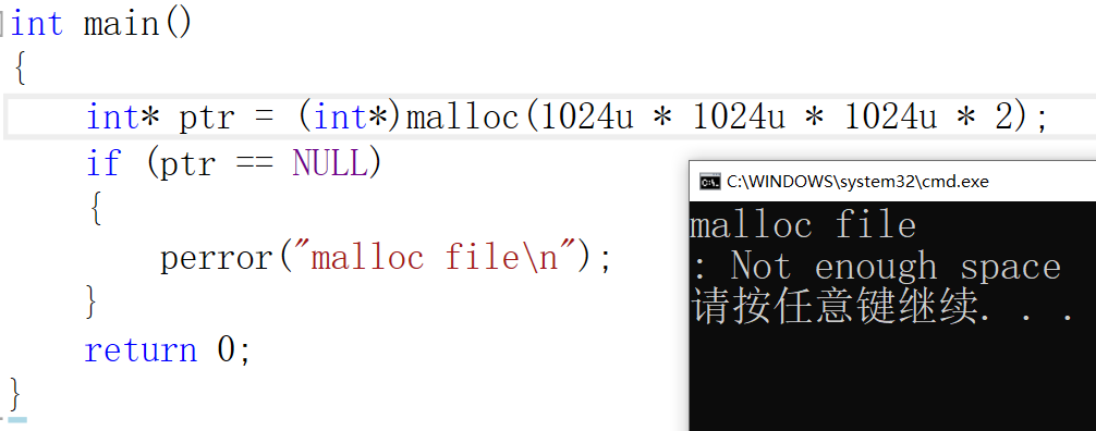 我们malloc失败会返回空指针,所以我们的malloc失败要判断返回值,然后我们在根据返回值进行相关的操作。