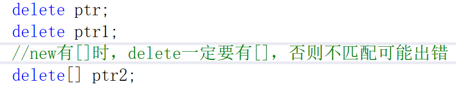 注意:申请和释放单个元素的空间,使用new和delete操作符,申请和释放连续的空间,使用new[]和delete[],注意:匹配起来使用。