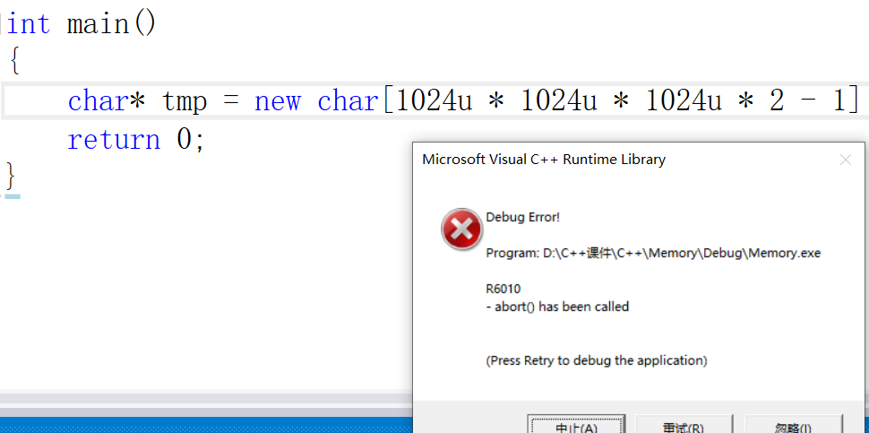int main() { try { char* tmp = new char[1024u * 1024u * 1024u * 2 - 1]; } catch (const exception& e) { cout << e.what() << endl; } return 0; }