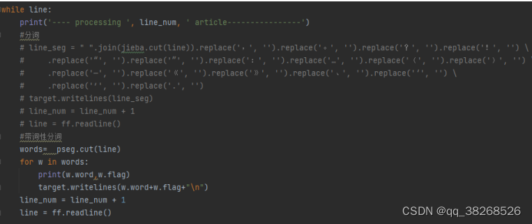 - 可以采用jieba.pseg.cut进行分词(可以显示词语词性);