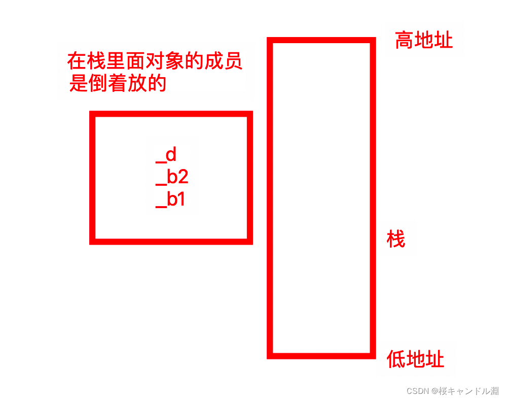 所以我们栈动态增长的时候,从低地址往高地址增长,也就是依次将我们的_b1,_b2,_d放入我们的栈中,先放入低地址的位置,然后再放入高地址的位置,然后就变成了我们下面的这个样子。