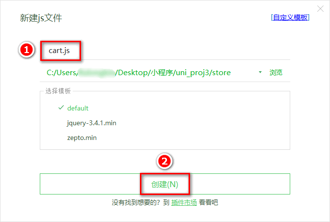 store目录上鼠标右键,选择新建 -> js文件,创建购物车的 store 模块,命名为cart.js: