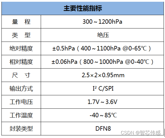 面对大气压力传感器这只具有多领域创新应用的“潜力股”,国内外已有多家厂商投入到气压传感器的研发生产,其中,作为国内优秀的MEMS传感器厂商,北京智芯传感科技有限公司(以下简称“智芯传感”)的ZXP0电容式大气压力传感器,凭借集成度高、体积小、易于安装、便于系统集成等特性,在同类产品中脱颖而出。ZXP0电容式大气压力传感器是一款高精度、低功耗的小型化数字压力传感器,兼具压力和温度测量两种功能。其内部信号处理器将压力和温度传感器元器件的输出分别转换为24位数据,每个压力传感器已单独校准并且将校准系数写入内部寄存器,在环境监测中使用校准系数将测量原始值转换成真实的压力和温度值,传感器测量原始值和校准系数可通过串行I²C接口获得。