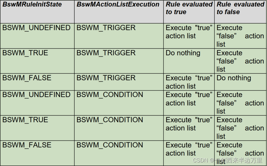 如果为触发执行配置了False动作列表,那么BswM将只在相应规则的评估从True变为False时执行它。