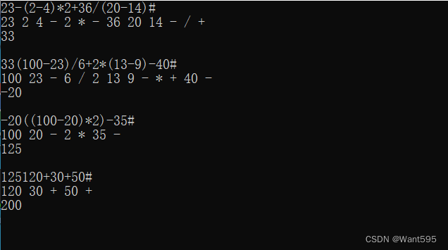 每行输入一个运算表达式(假设表达式均为正确的表达式),以#作为表达式结束。(表达式长度不超过80)