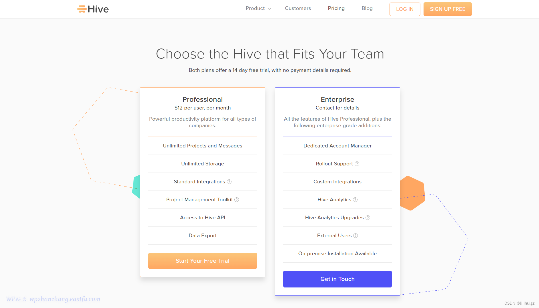 Hive 被数千个快速发展的团队使用,无论大小,跨越各个行业。Hive 用户包括来自 Comcast、Toyota、Electronic Arts 和 Starbucks 的团队。Hive 用户受益于灵活的定价计划,每个组织都可以根据需要添加特定的应用程序,Hive Solo 还允许 1 人或 2 人的团队完全免费、永久地利用 Hive 的全部功能。