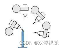 工具坐标系可采用N(N>=4)点法确定:机器人TCP通过N种不同姿态同某定点相接触,得出多组解,通过计算得出当前TCP(Tool Central Point,中文叫做工具中心点)与工具安装法兰中心点(tool0)的相应位置,坐标系方向与tool0一致。