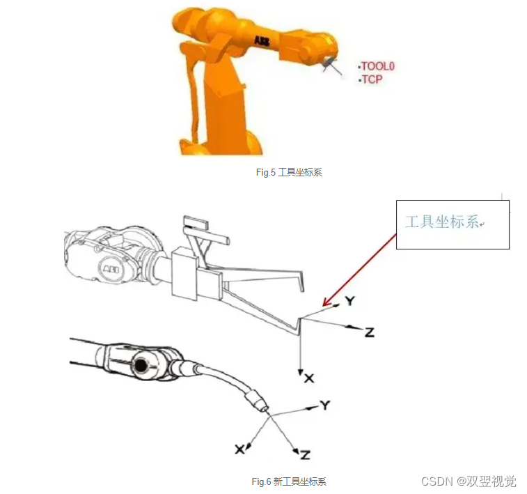 例如:焊接的时候,我们所使用的工具是焊枪,所以可把工具坐标移植为焊枪的顶点。而用吸盘吸工件时使用的是吸盘,所以我们可以把工具坐标移植为吸盘的表面(如下图7所示)。