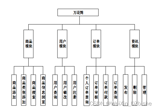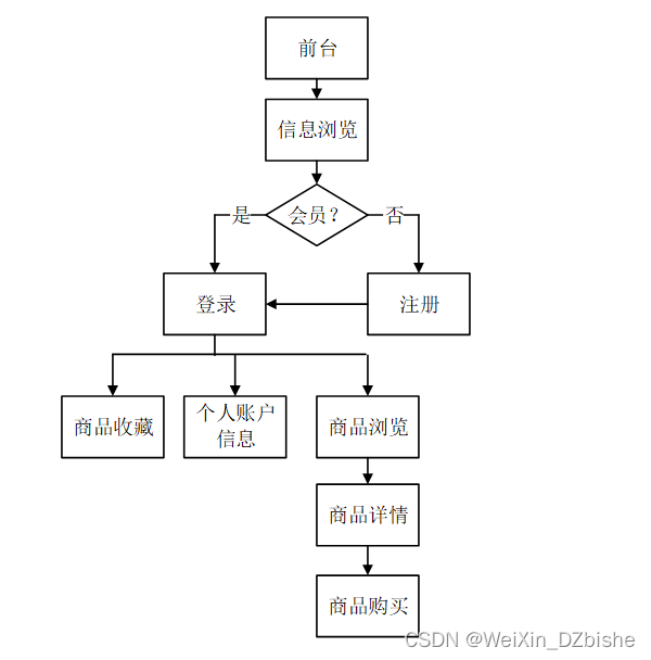 系统分为前台和后台,前台为注册用户,后台由管理员使用,但也可以用来登录普通用户,前台功能模块和后台功能模块可以细分为各种功能模块。