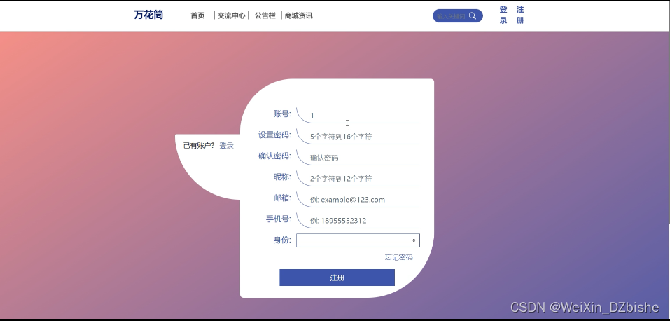 用户在系统的注册页面根据提示填写相应的信息,然后点击“注册”按钮。 |