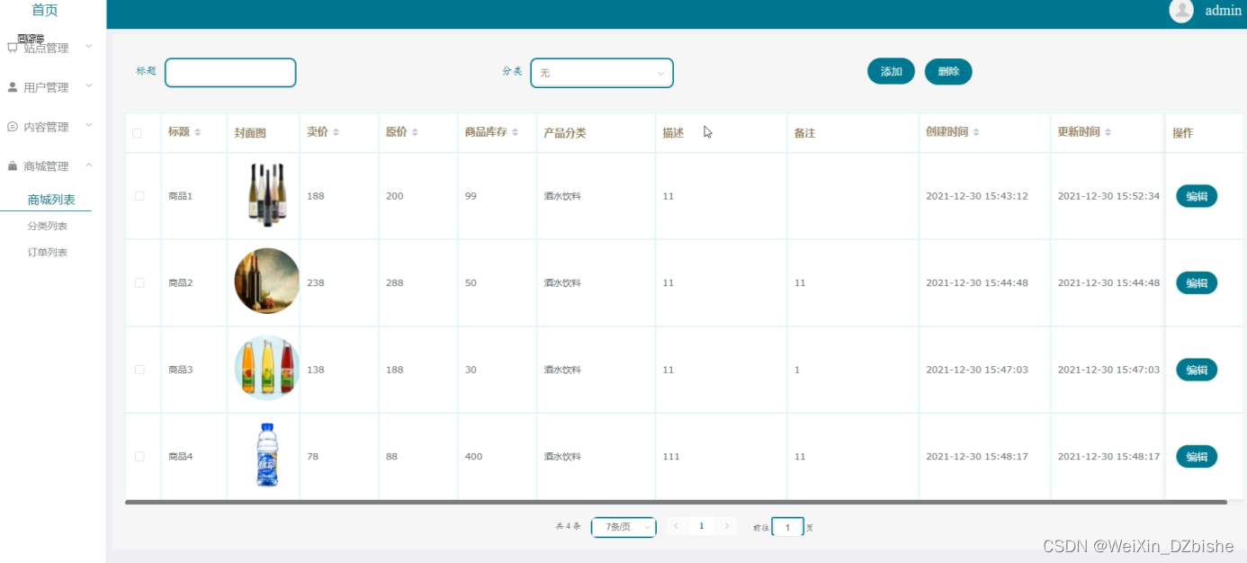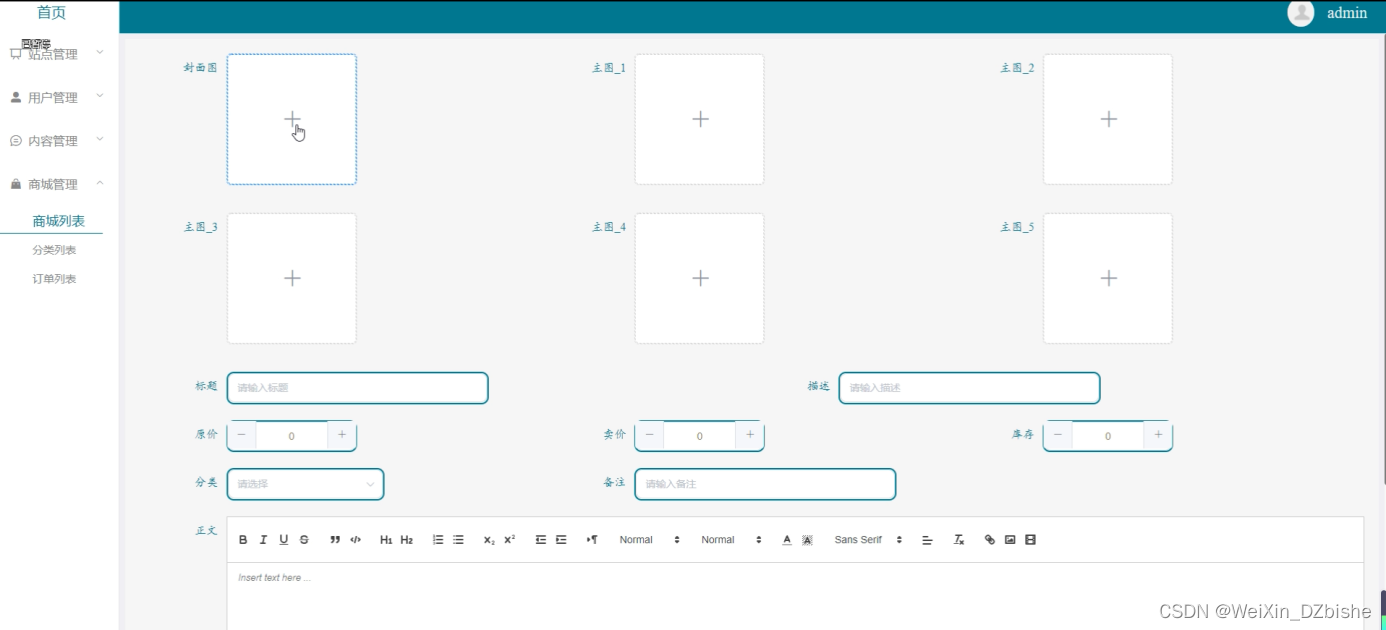 商城资讯管理模块:可以管理分类信息,增加和删除商城资讯信息。