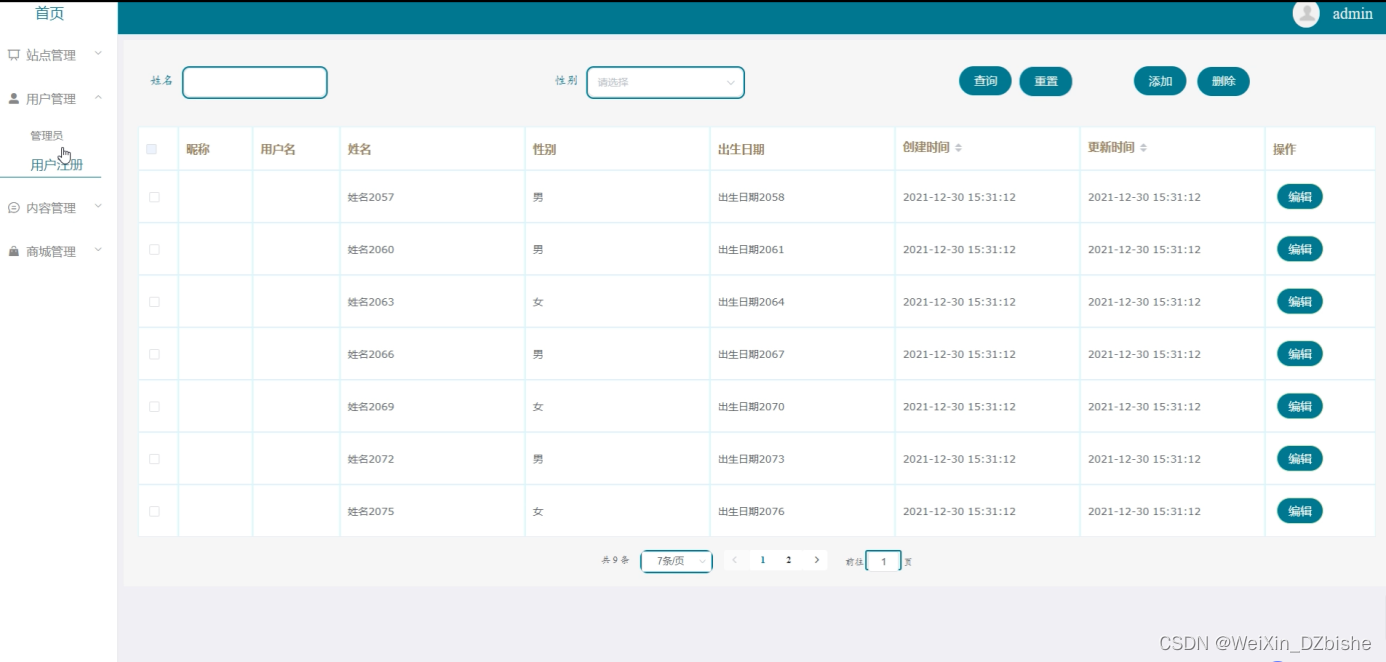 用户管理模块:要求用户信息可以展示在后台中,用户管理分管理员和普通用户两部分,管理员可以修改管理员的名字和密码,用户管理可以显示用户注册的信息、修改用户个人资料和删除用户的操作。