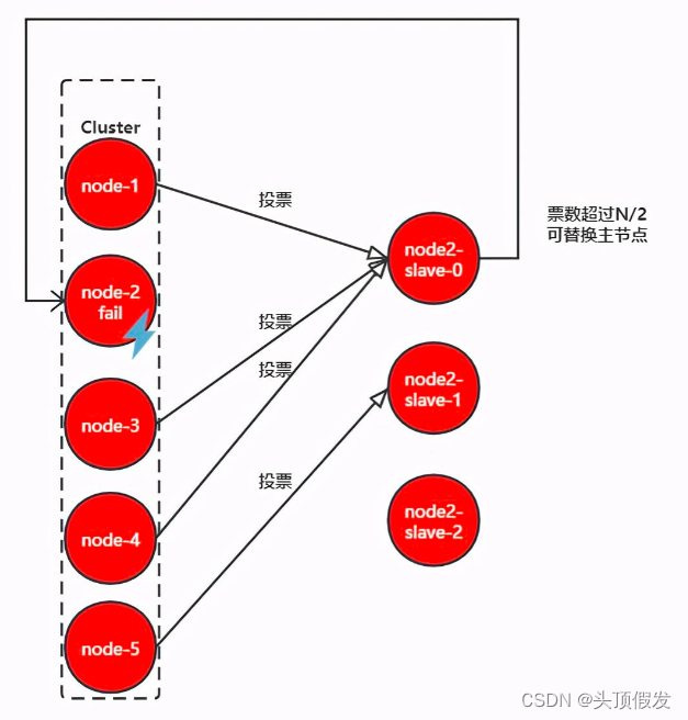 集群同样具备了自动转移故障的功能,和哨兵有些类似,在进行客观下线之后,就开始准备让故障节点的从节点“上任”了。