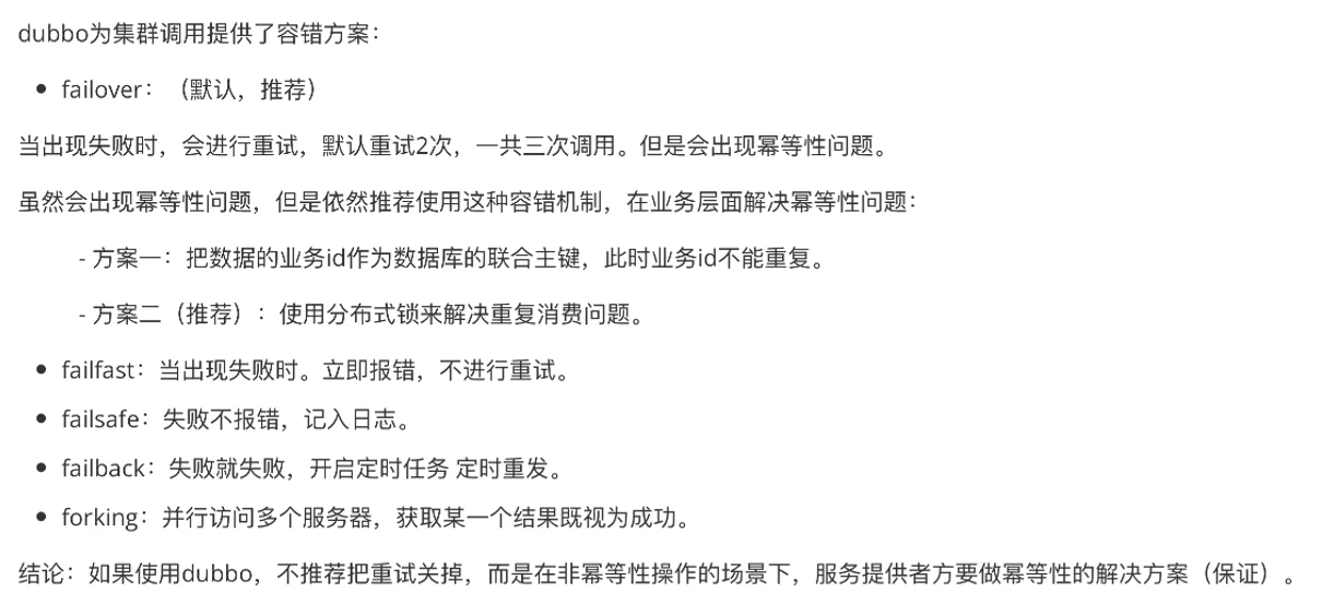 dubbo为集群调用提供了多种容错方案: