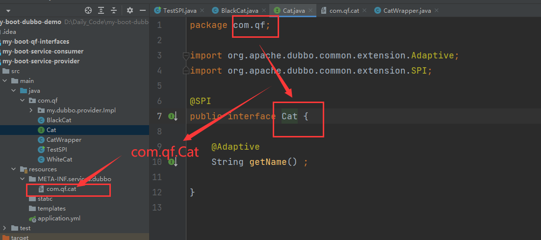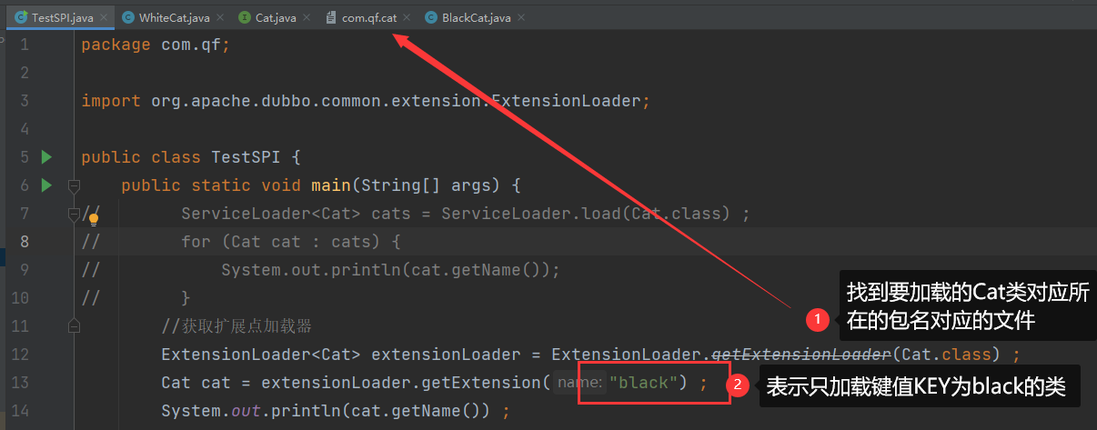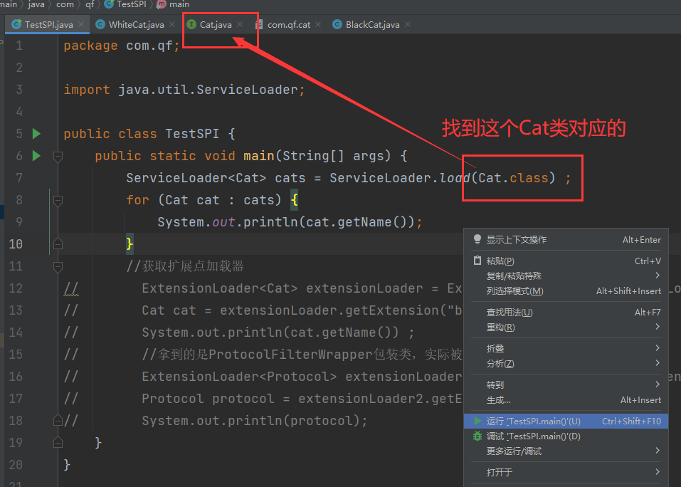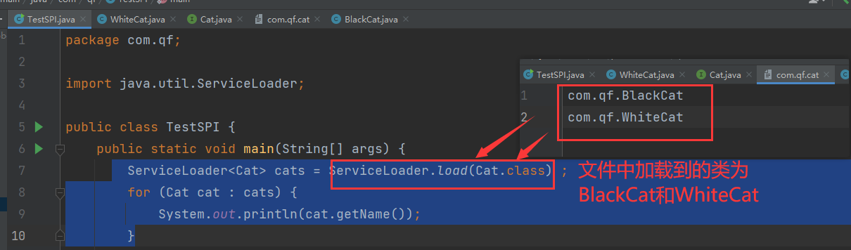 4.找到指定的对应文件com.qf.cat之后,该文件中对应的类就会被加载了 !