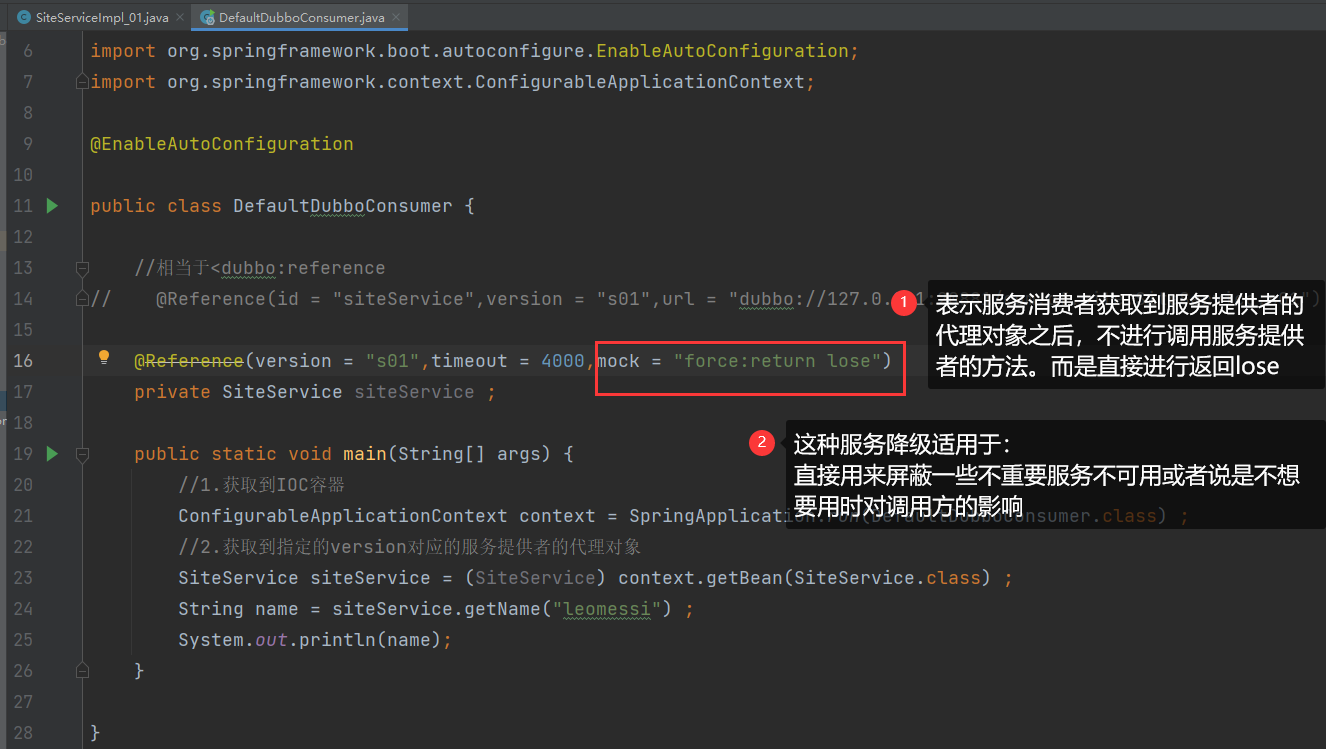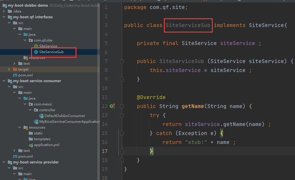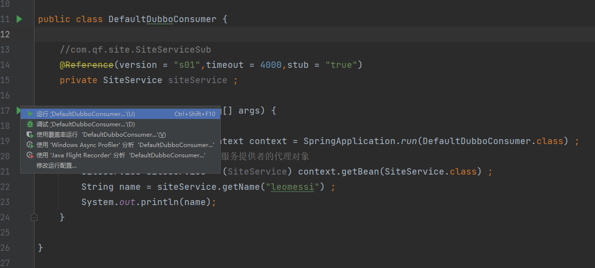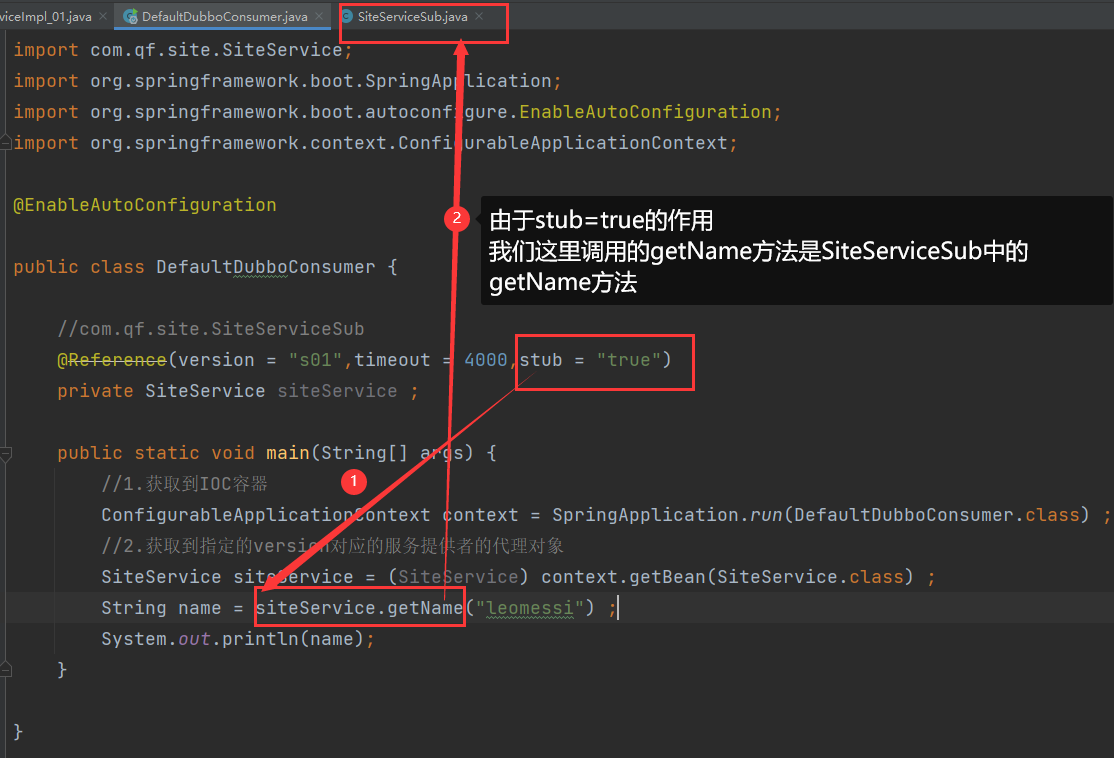 1.首先我们要在服务消费者获取服务提供者的代理对象的注解上面进行加上一个字段stub,并且设置为true