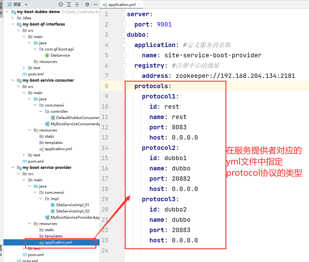 2.服务提供者中进行选择使用哪一种协议