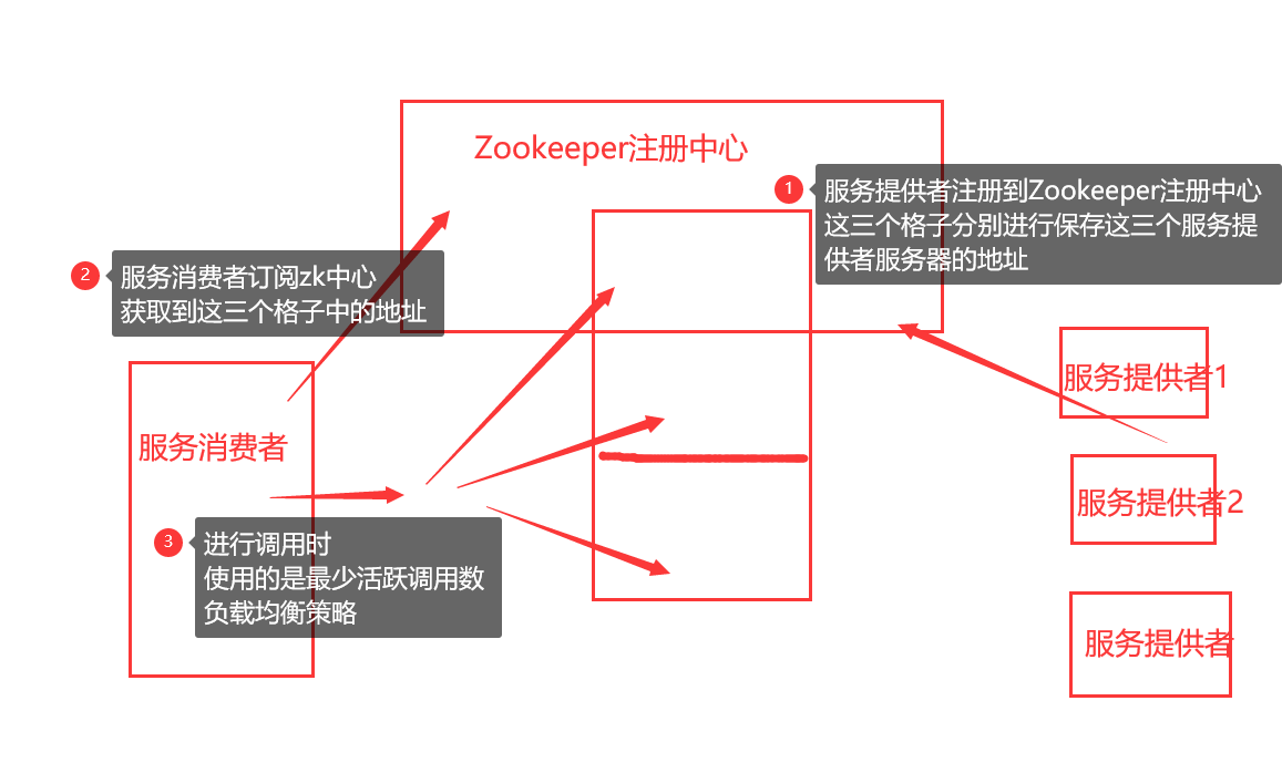 (1)当服务消费者订阅了zookeeper注册中心之后,获取了服务提供者对应的所有地址。