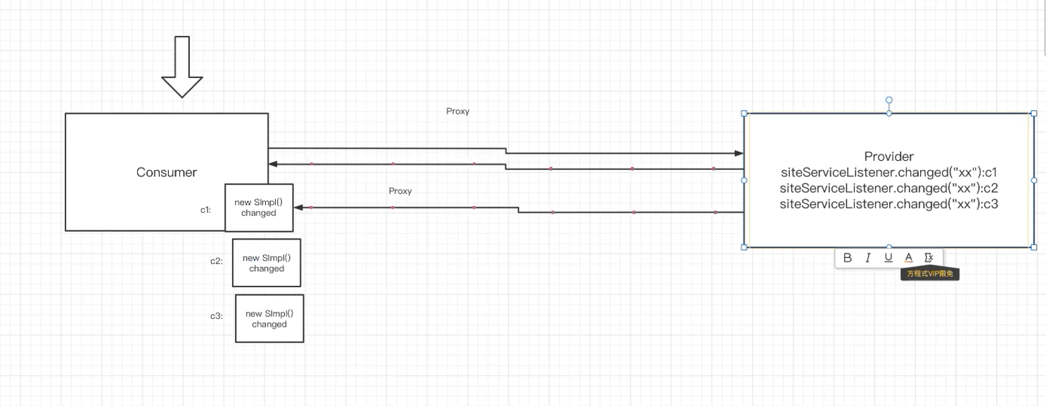 在服务消费者可以提供一个入口,该入口可以允许服务提供者进行调用服务消费者的逻辑