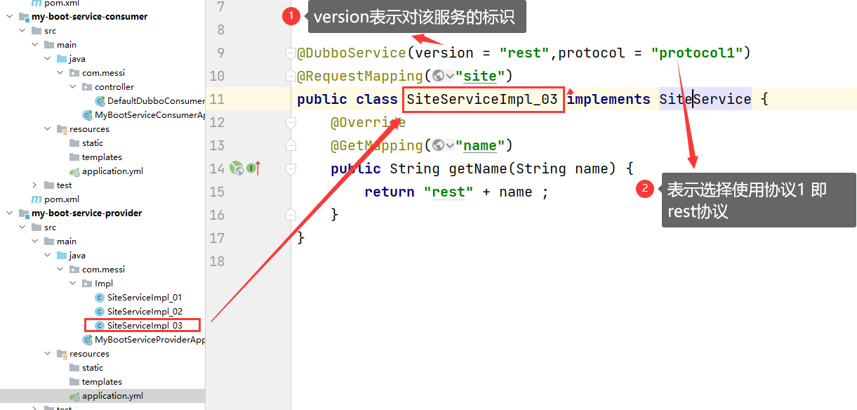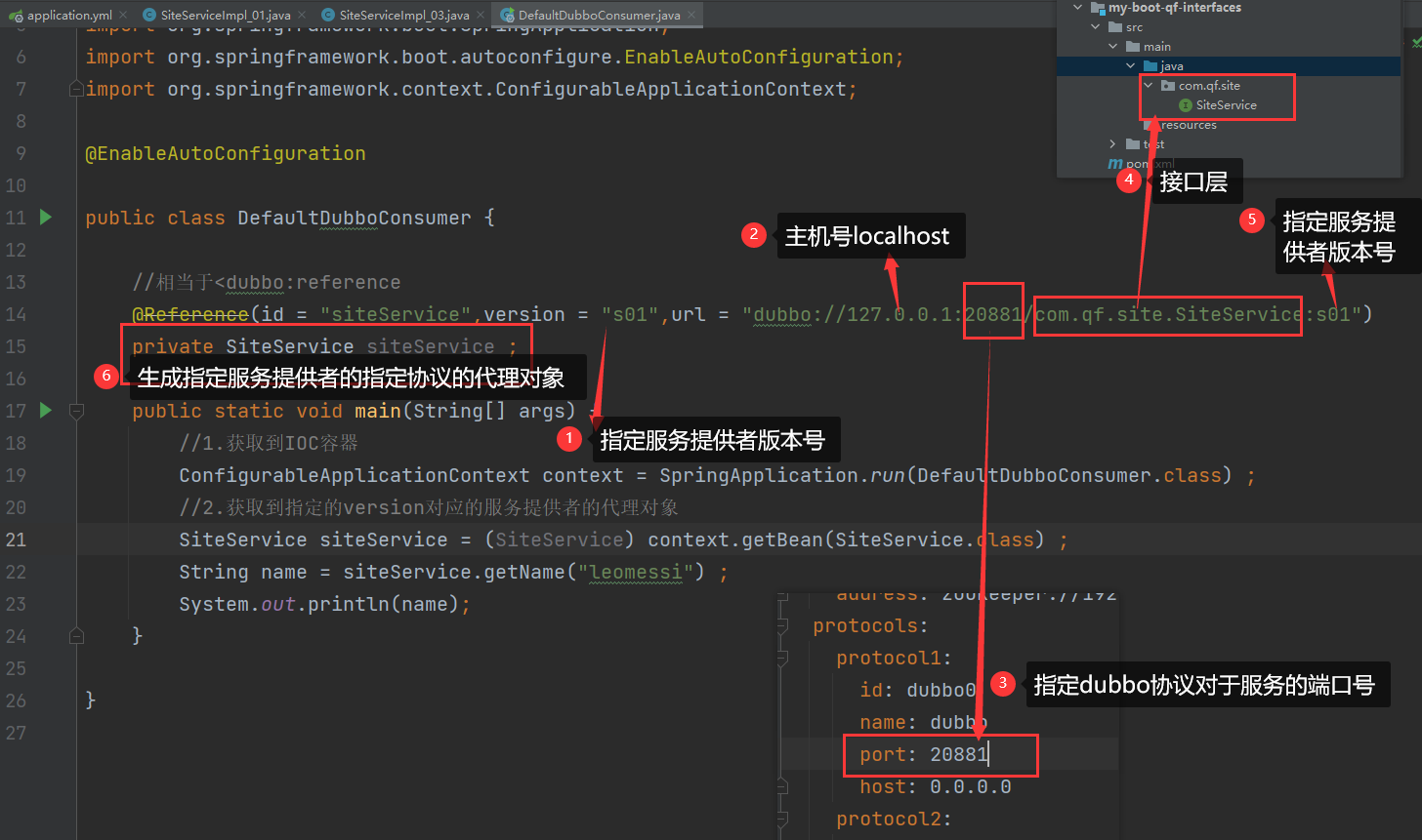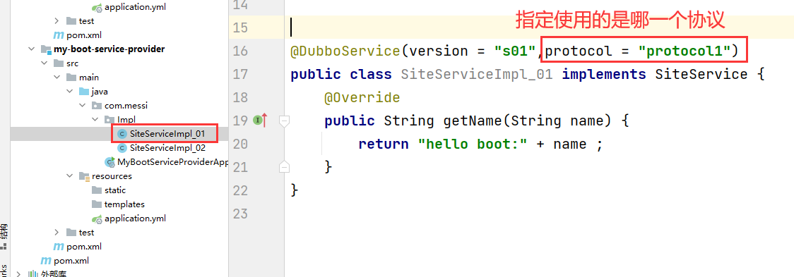 3.那么服务提供者由于消费者的url指定,遵循的协议就是协议1
