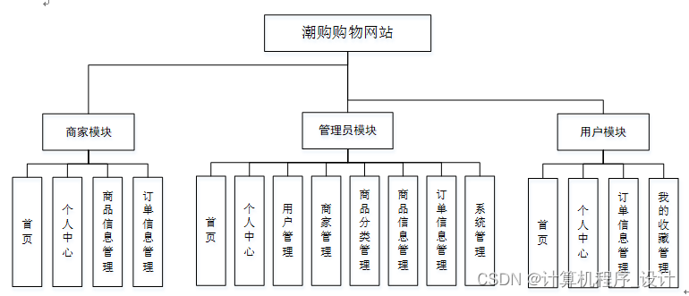 系统架构图属于系统设计阶段,系统架构图只是这个阶段一个产物,系统的总体架构决定了整个系统的模式,是系统的基础。潮购购物网站的整体结构设计如图4-2所示。