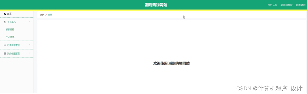 用户登录进入系统后台可以查看首页、个人中心、订单信息管理、我的收藏管理等信息,并进行相应的操作管理,如图5-12所示。