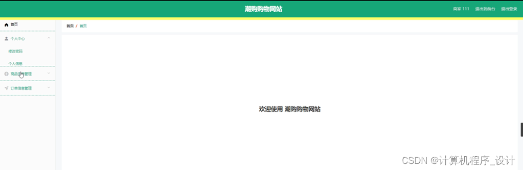 商家登录进入系统可以查看首页、个人中心、商品信息管理、订单信息管理等信息,并进行相应的操作管理,如图5-15所示。
