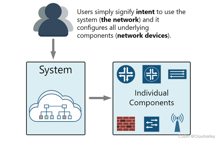 - 更好的分析——老实说,在传统的大型网络中,很少有人(通常没有人)了解并掌握全局。由于大量网络设备和大量分析数据,大多数时候数据很难快速读取和解释。将网络视为一个系统可实现单一管理控制台,该控制台可在统一显示中显示来自多个来源的数据。