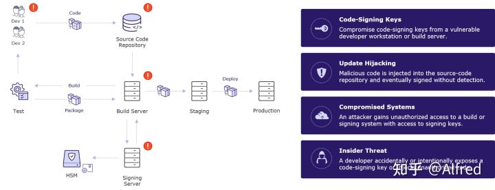 內部威脅:組織內的開發人員可能故意簽署惡意代碼,甚至無意中在可公開訪問的軟件更新或存儲庫中披露簽名密鑰。
