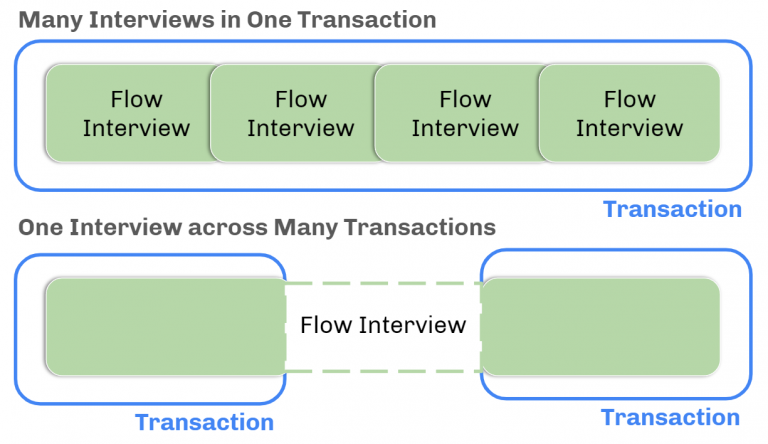 但是,多个Flow Interviews可以在同一个Transactions中运行,一个Flow Interviews也可以在多个Transactions中运行。重要的是,Flow Interviews不是Transactions,并且适用不同的限制。