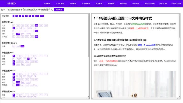 wordpress字体插件不需要我们死记各个标签对应,通过可视化的页面,对我们的标题H标签、内容P标签、图片IMG标签等,进行自动管理。通过条件字体大小、字体颜色、换行间距等,让我们轻松批量管理字体。