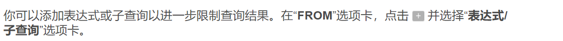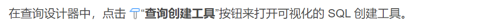 【注意】SQL 创建工具仅支持 SELECT 语句。请使用 SQL 编辑器创建其他复杂查询(例如 INSERT、UPDATE、DELETE)。