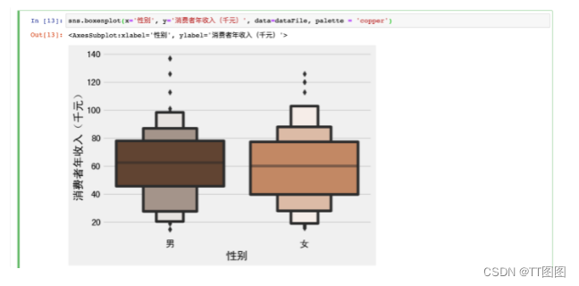 Boxenplot 由 seaborn 软件包提供,看起来几乎像一个箱形图。箱线图的主要改进是更精细的分位数显示,为用户的可视化添加了更多信息。