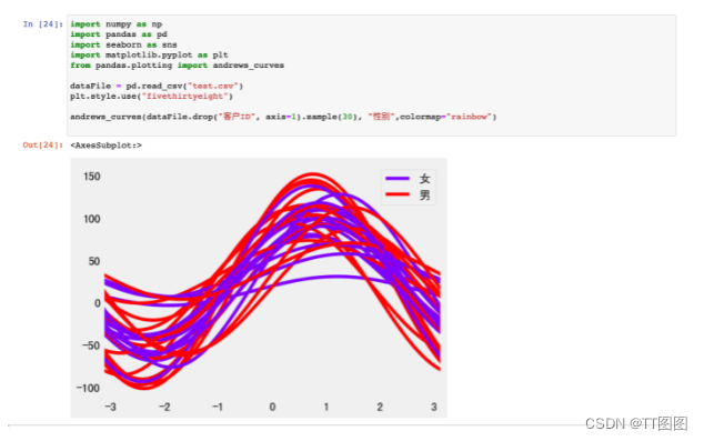 因为人类可以感知和理解的最大维度数是三个,所以任何超过这个维度数的特征组合都很难将它们放在画布上。为了解决这个问题,有几种可视化以我们可以消化的方式描述三个维度上的多维数据。安德鲁斯曲线就是其中之一。它通过以下方式转换多变量观察: